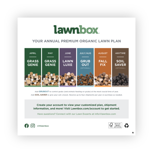 Lawnbox delivers 100% organic lawn care straight to your door. All Lawnbox products are safe for use on lawns with kid and pet traffic. They are also safe for use around environmentally sensitive waterways, ponds and wells.