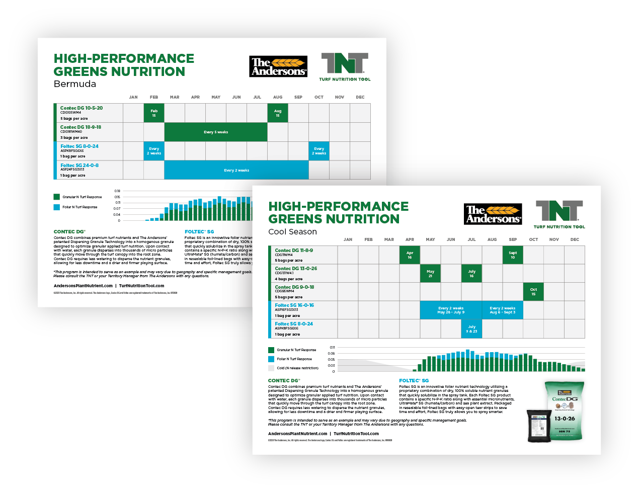 The Turf Nutrition Tool (TNT) is a web-based platform that allows turf managers to create custom nutrition programs and model the nitrogen release of many of The Andersons’ most popular granular and foliar products.